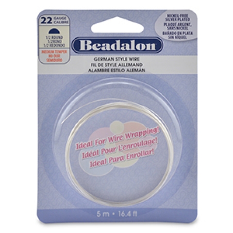 beadalon german style wire half round 22 gauge - silver