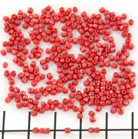 Czech faceted round 2 mm - alabaster pastel dark coral