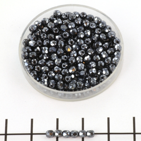 Czech faceted round 3 mm - hematite