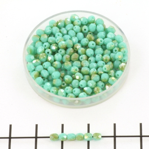 Czech faceted round 3 mm - luster lt champagne turquoise