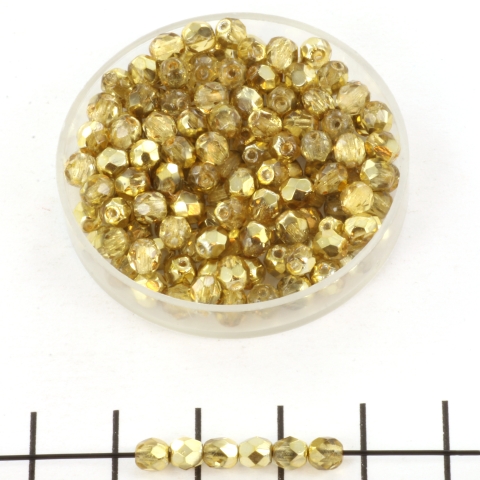 Czech faceted round 4 mm - crystal gold topaz
