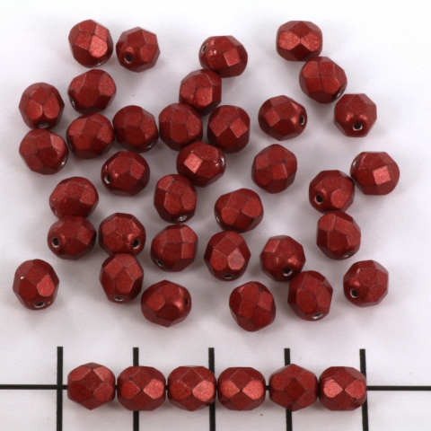 Czech faceted round 6 mm - saturated metallic cherry tomato