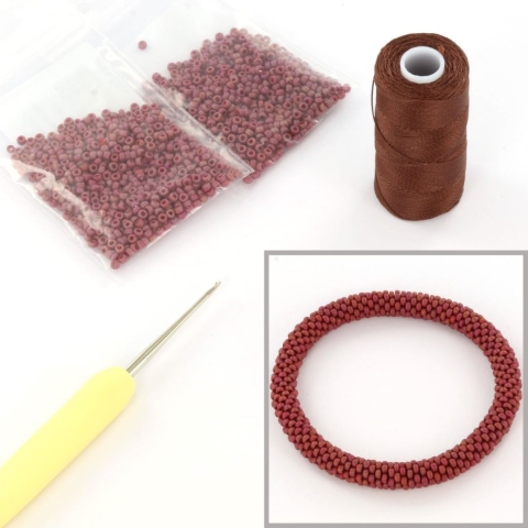 DIY kit bracelet crochet with 11/0 - frosted rainbow dark red