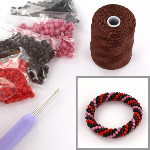 DIY kit bracelet crochet with 6/0 - pink terra
