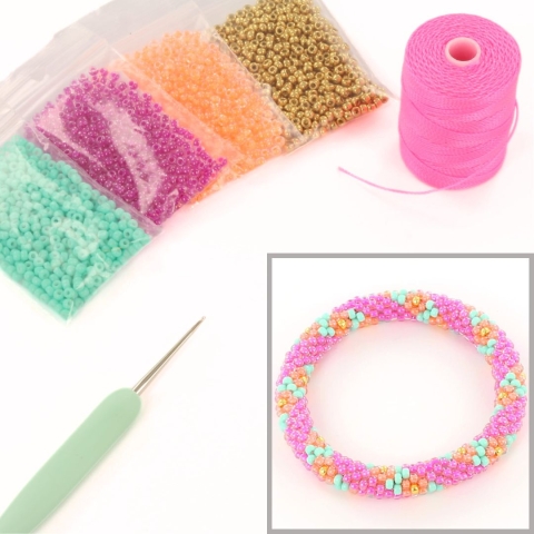 DIY kit bracelet crochet with 8/0 - neon flower