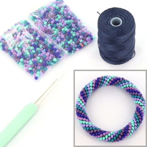 DIY kit bracelet crochet with 8/0 - purple mint
