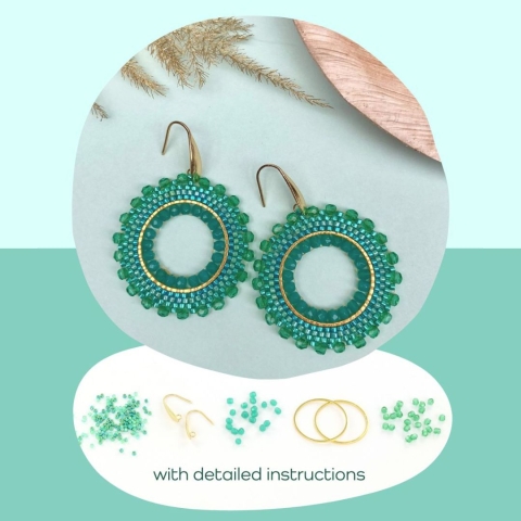 DIY kit for making beautiful round earrings using the brick stitch technique. All necessary beads and parts are included, along with a detailed explanation of how to make these earrings. The earrings will be approximately 4 cm in diameter.