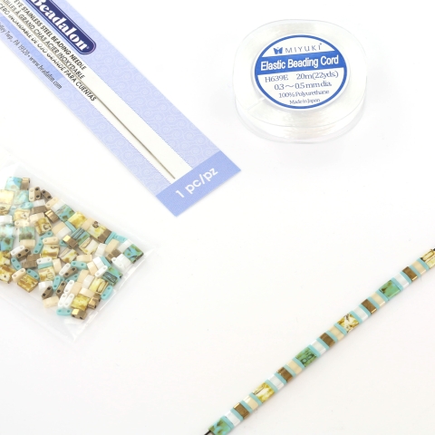 You can get started right away with this nice miyuki tila package! The package contains a beautiful bead mix and the right elastic and needle, so no more difficult choices about which tila beads go well together. In this blog you can read everything about stringing tilas with elastic: Blog starten met miyuki tila armbandjes rijgen met elastiek