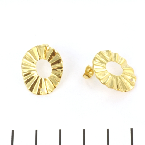 earstud wavy oval with hole - stainless steel gold 22 mm