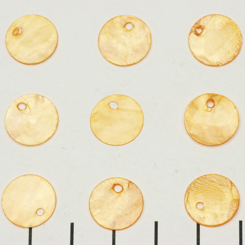 fresh water shell thick round flat 12 mm 1 hole - yellow