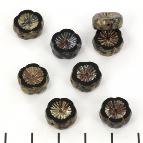 This flower-shaped glass bead gives a cute look to your product. The bead has a width and length of 12 mm and a thickness of 5 mm. The hole is 1 mm.