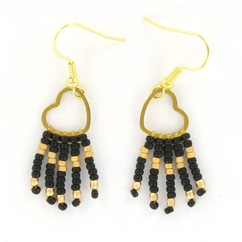 Make your own fringe earrings - hearts black gold