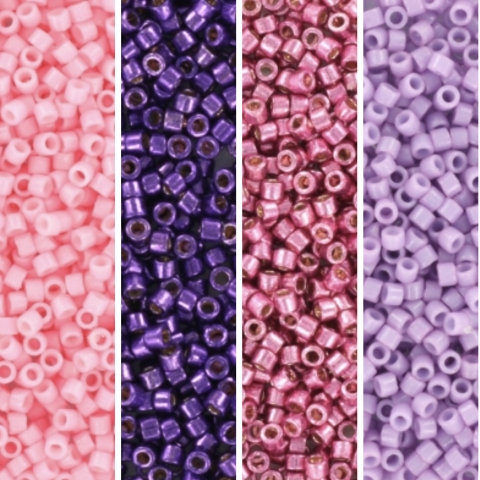Miyuki is the brand name of the best quality seed beads, made in Japan. They come in various forms and sizes, including the delica beads shown here. The delica beads have a tubular shape, which gives the finished piece a nice flat surface.