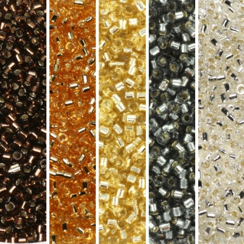 Miyuki is the brand name of the best quality seed beads, made in Japan. They come in various forms and sizes, including the delica beads shown here. The delica beads have a tubular shape, which gives the finished piece a nice flat surface.