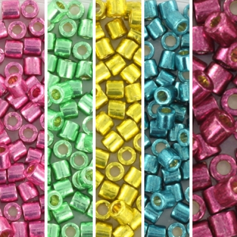 Miyuki is the brand name of the best quality seed beads, made in Japan. They come in various forms and sizes, including the delica beads shown here. The delica beads have a tubular shape, which gives the finished piece a nice flat surface.