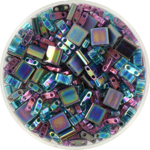 The mixes with tila beads consist of whole, half and quarter tila beads, which can be used together in a piece of jewelry. The whole tilas are 5 x 5 mm, the half tilas are 2.5 x 5 mm and the quarter tilas are 1.25 x 5 mm. This means that the width of the different tila beads is always exactly 5 mm of all of them.