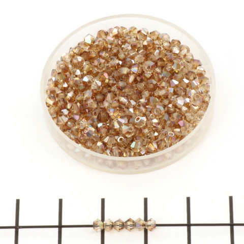 Preciosa has a wide range of beads, including these bicones. They are beautifully uniform and have a beautiful shine, which provides extra sparkle in your jewelry and retains its color very nicely. These are the 3 mm bicones.