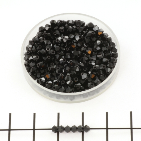 Preciosa has a wide range of beads, including these bicones. They are beautifully uniform and have a beautiful shine, which provides extra sparkle in your jewelry and retains its color very nicely. These are the 3 mm bicones.