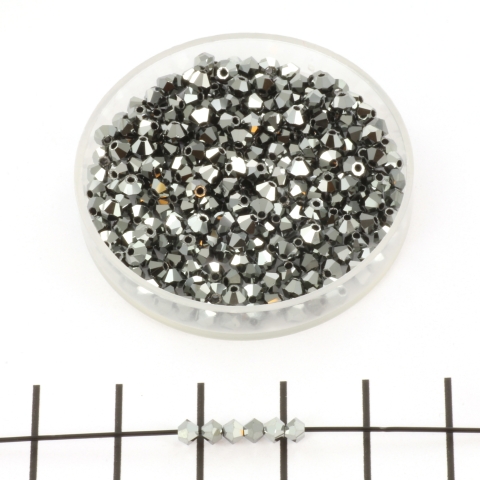 Preciosa has a wide range of beads, including these bicones. They are beautifully uniform and have a beautiful shine, which provides extra sparkle in your jewelry and retains its color very nicely. These are the 3 mm bicones.