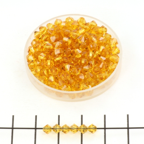 Preciosa has a wide range of beads, including these bicones. They are beautifully uniform and have a beautiful shine, which provides extra sparkle in your jewelry and retains its color very nicely. These are the 4 mm bicones.