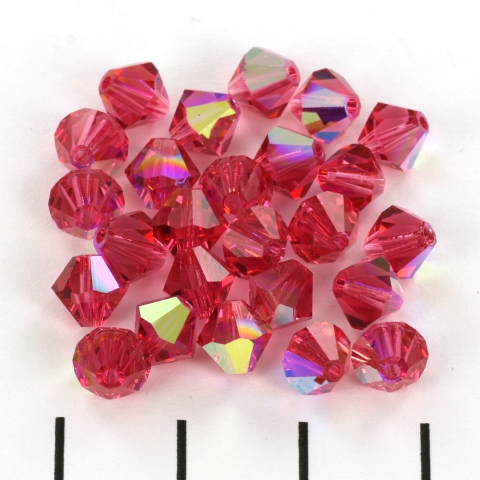 Preciosa has a wide range of beads, including these bicones. They are beautifully uniform and have a beautiful shine, which provides extra sparkle in your jewelry and retains its color very nicely. These are the 6 mm bicones.