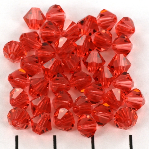 Preciosa has a wide range of beads, including these bicones. They are beautifully uniform and have a beautiful shine, which provides extra sparkle in your jewelry and retains its color very nicely. These are the 6 mm bicones.