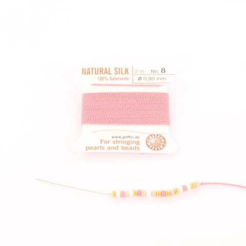 Griffin 100% natural silk thread no. 8. The card contains 2 meters of silk thread of 0.80 mm thickness, with a handy needle on the thread.
