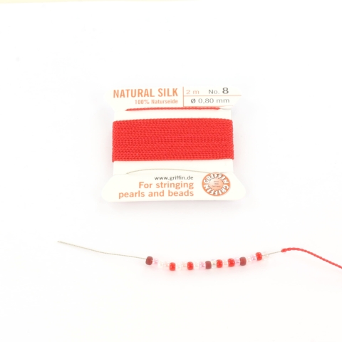 Griffin 100% natural silk thread no. 8. The card contains 2 meters of silk thread of 0.80 mm thickness, with a handy needle on the thread.